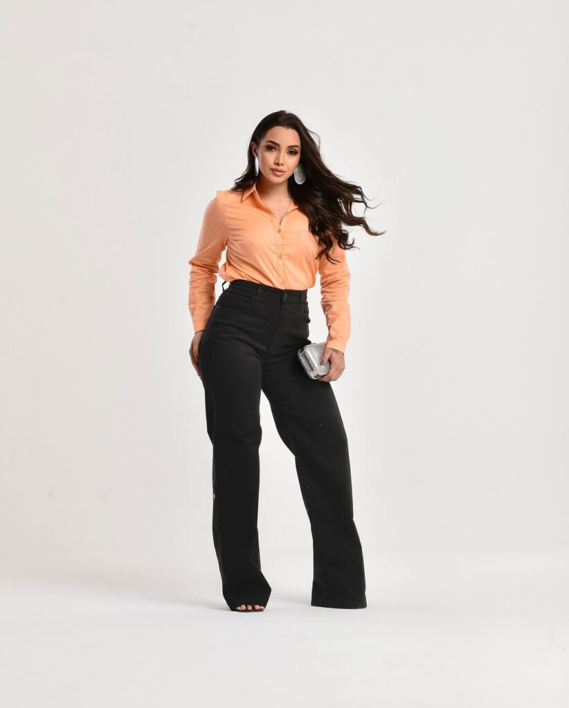 A marca aposta em designs exclusivos que valorizam a força e a feminilidade de quem os veste. A camisa damasco, com seu tecido leve e caimento fluido, traz um toque sutil de delicadeza. Já a calça de cintura alta, bem estruturada, alonga a silhueta e transmite uma imagem de poder e sofisticação.